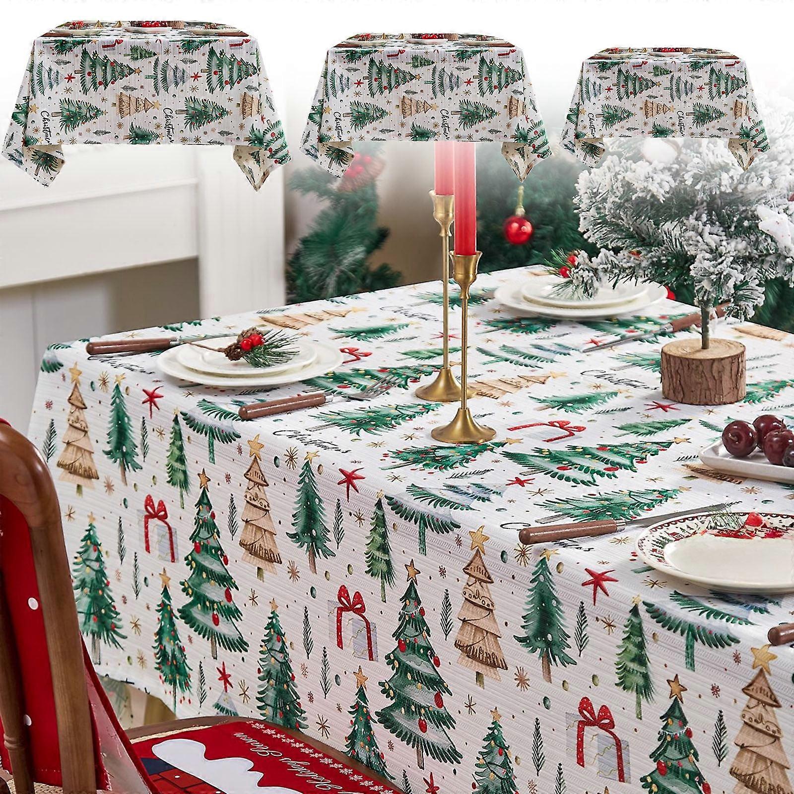 Christmas Tablecloth, Winter Snowman House Trees Green Washable Cover for Party Picnic Dinner Decor, Holiday Winter