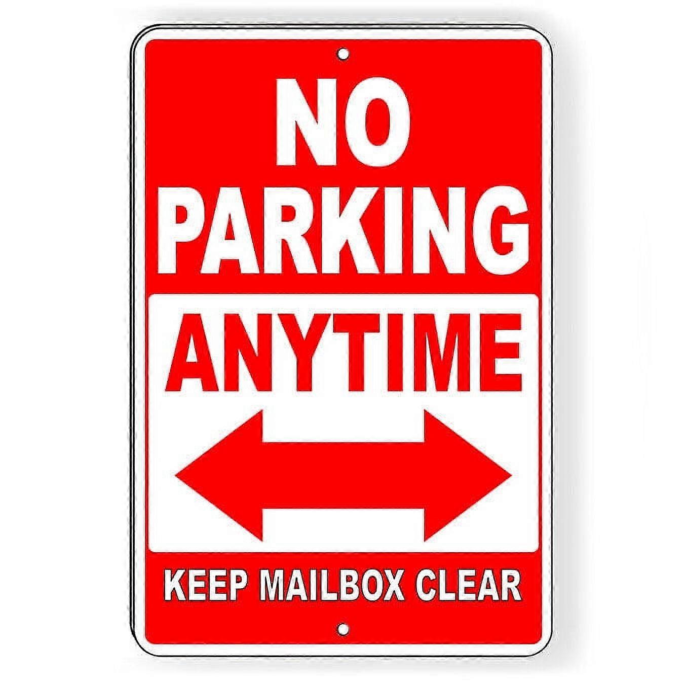 (Aluminum metal) No Parking Anytime Double Arrow Mailbox Clear Metal Sign Size: 8 x 12 Inch