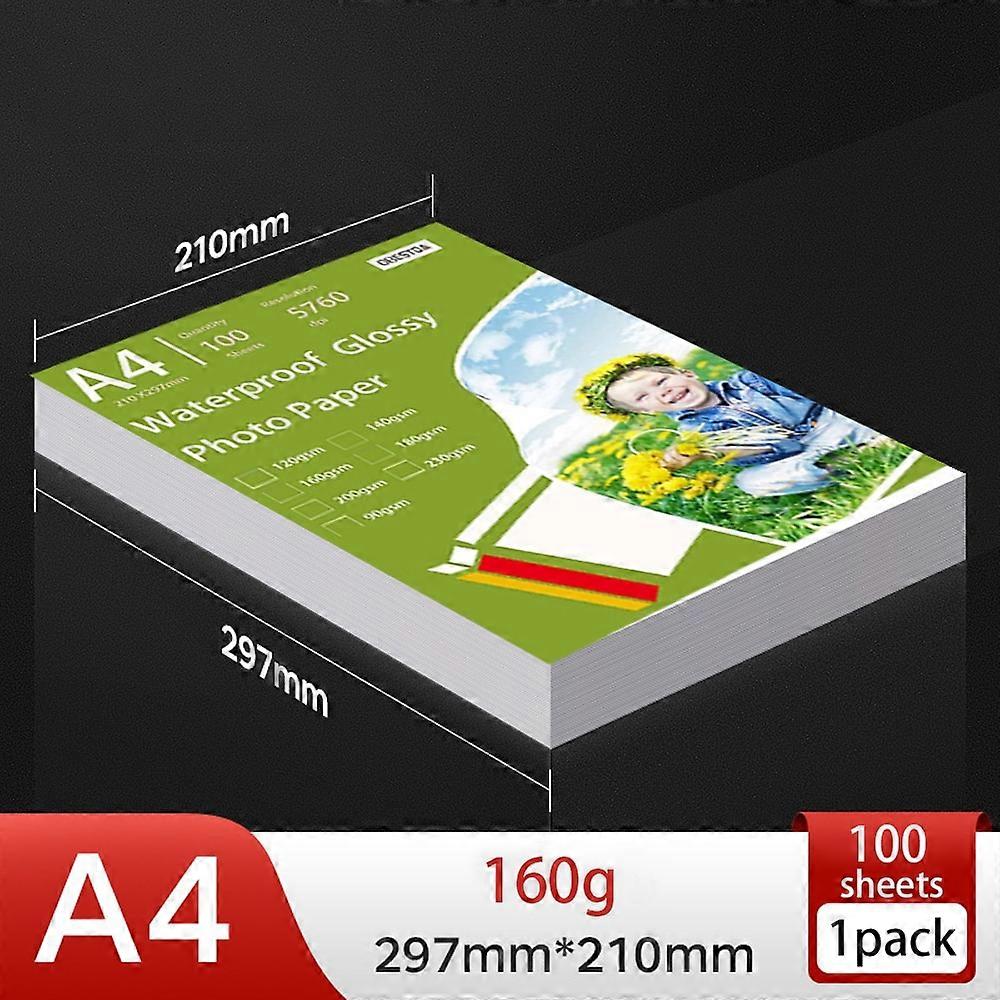 A4 100 Sheets Glossy Photo Paper 8.27 * 11.69 Inch 160gsm 120g High Gloss Quick Dry for Canon Epson HP Color Inkjet Printer A4 160g 100sheets