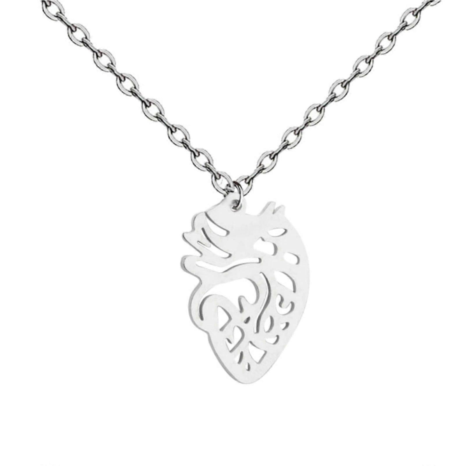 ZHENYANGli Pendant Letter Necklace Anatomical Heart Pendant Necklace Human Stainless Steel Clavicle Chain