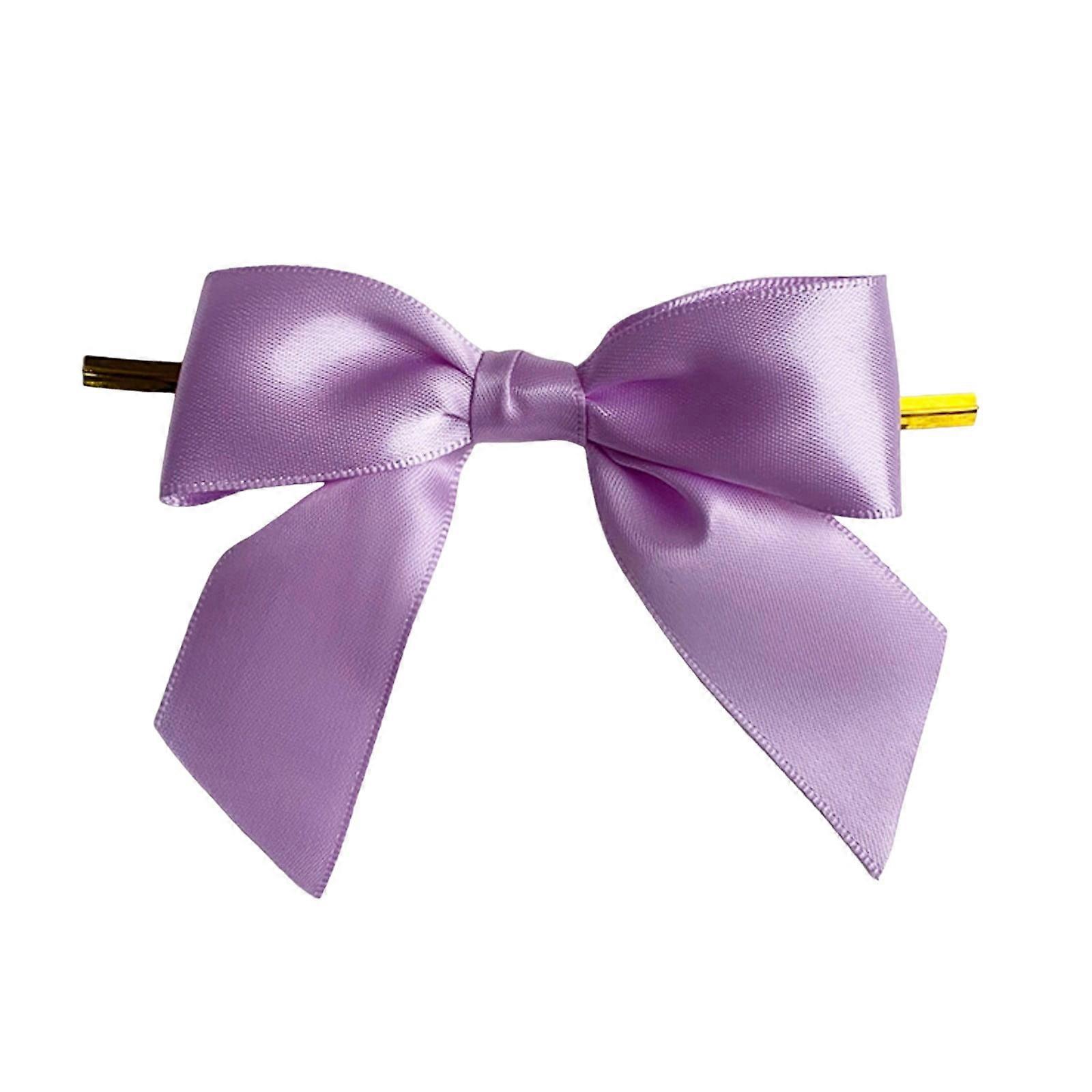 Bentne Twist Tie Bows, Satin Ribbon Bows 3.4" 50-Pack for Gift Wrapping, Treat Bags, Wedding, Birthday, Christmas Decor (Purple)