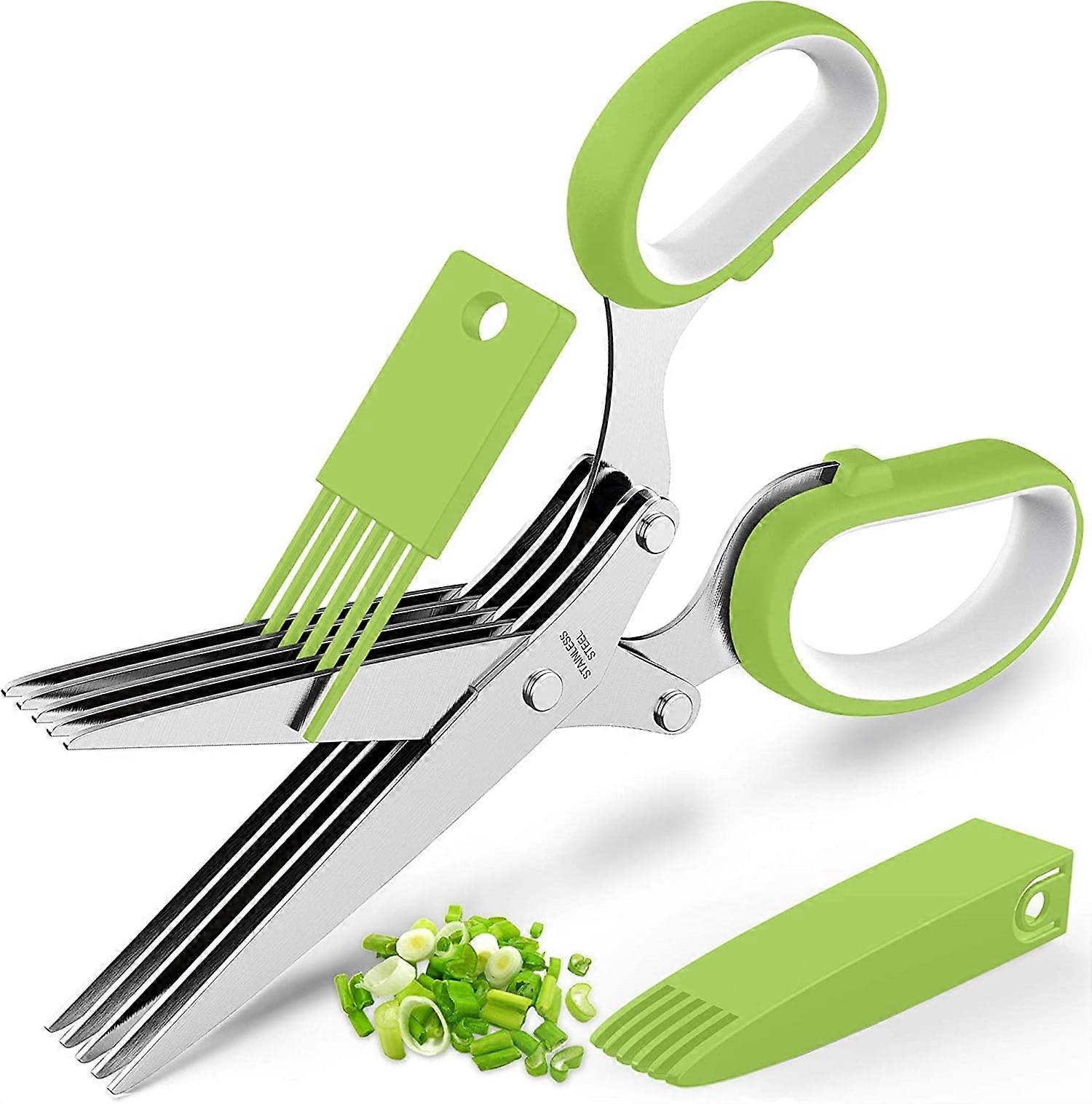 Caseiwn Herb Scissors with 5 Stainless Steel Blades, Safe Cover & Mincer, compatible with Sharp, Dishwasher Safe
