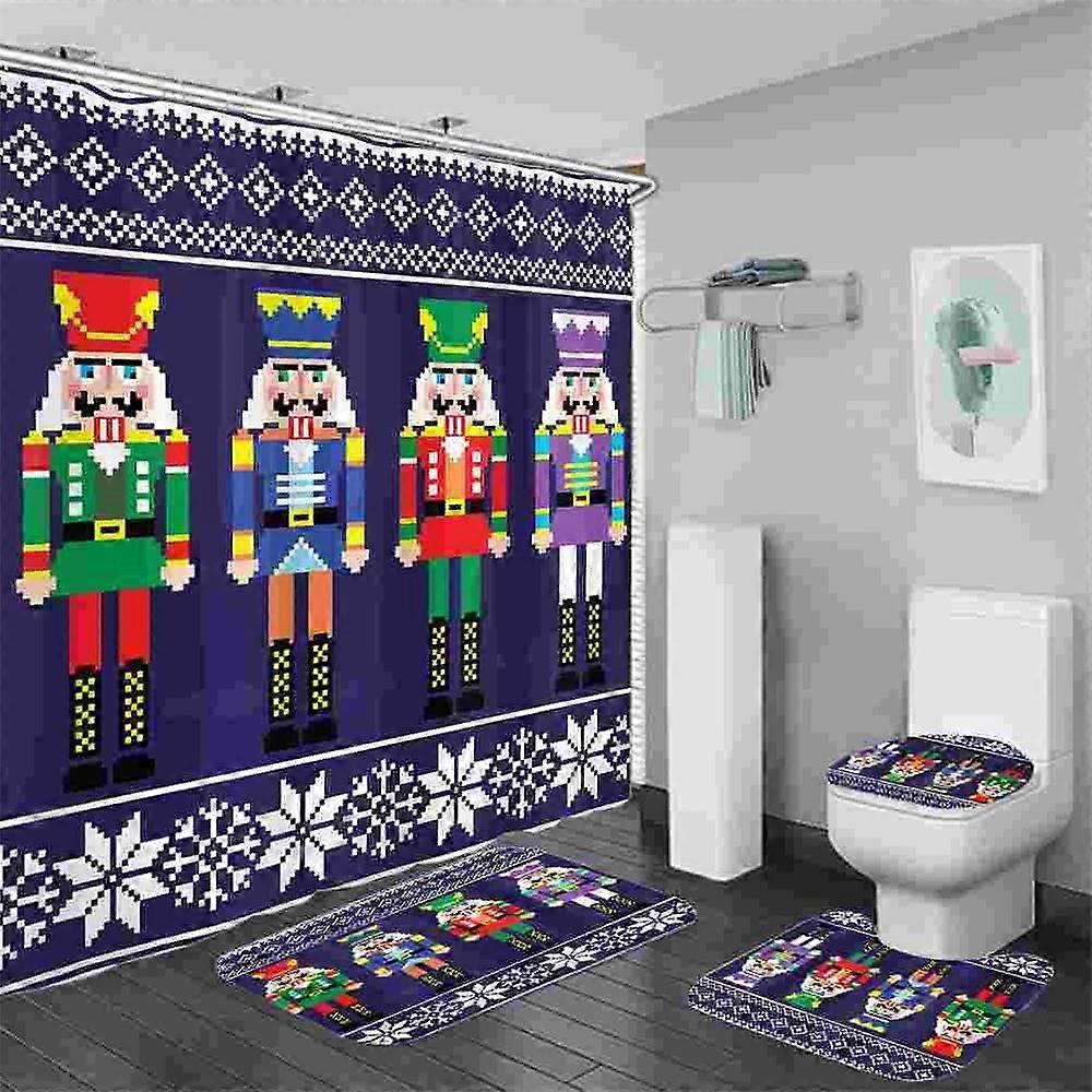 Merry Christmas Shower Curtain Set of 4 with Non-Slip Rug, Toilet Cover & Bath Mat, Compatible with Standard Hooks