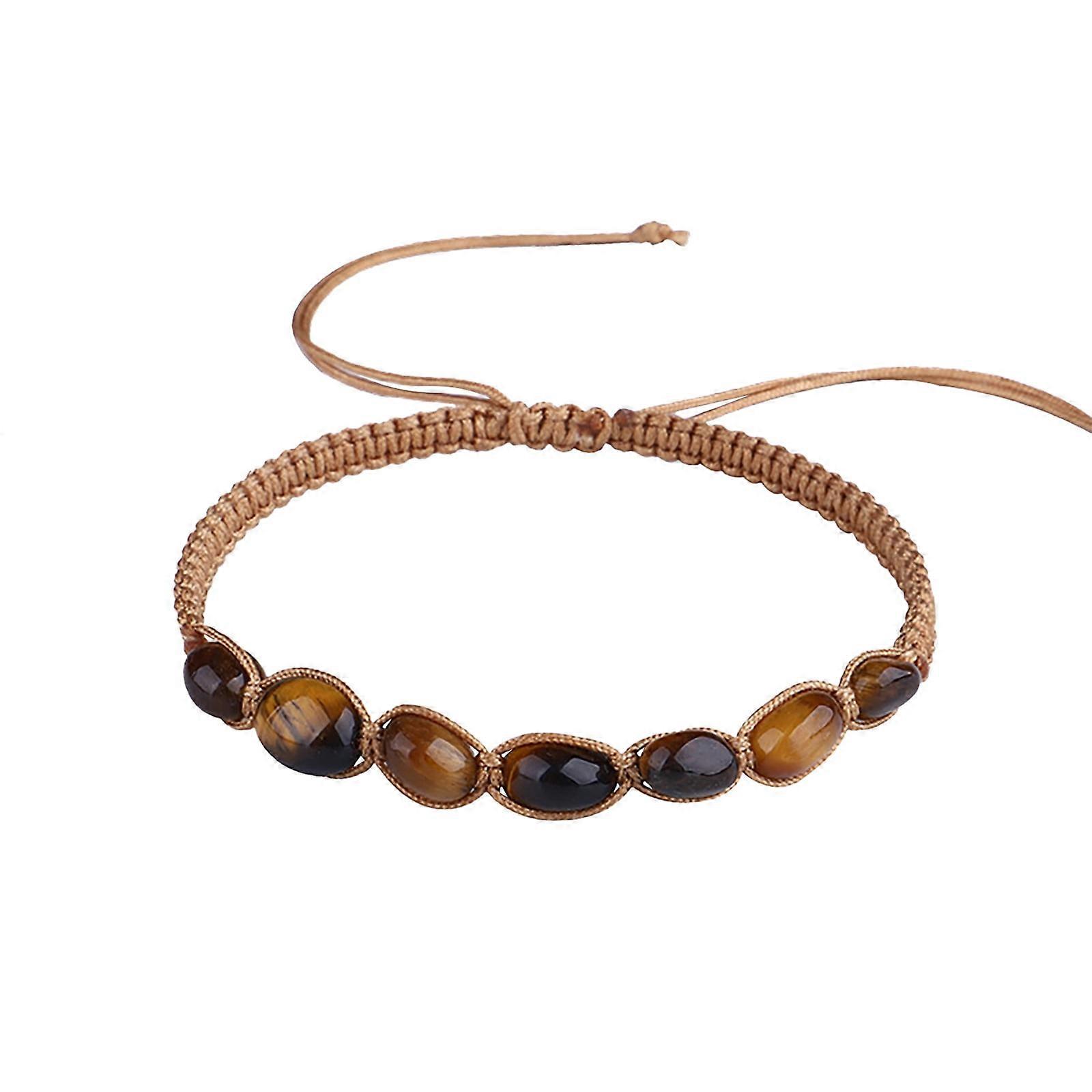 HALJEN Ankle Bracelets for Women, Sterling Silver & Gold Hand Woven Flat Knot Beaded Bracelet with Rough Stone, Gravel Follow Shaped