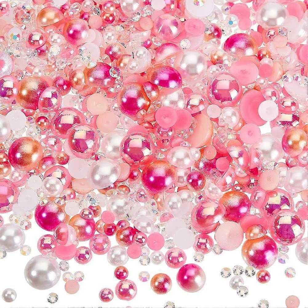 60g Pink Flatback Pearls & Rhinestones, Resin Half-Round Beads for DIY, Nail Art, Compatible with Craft Decorations