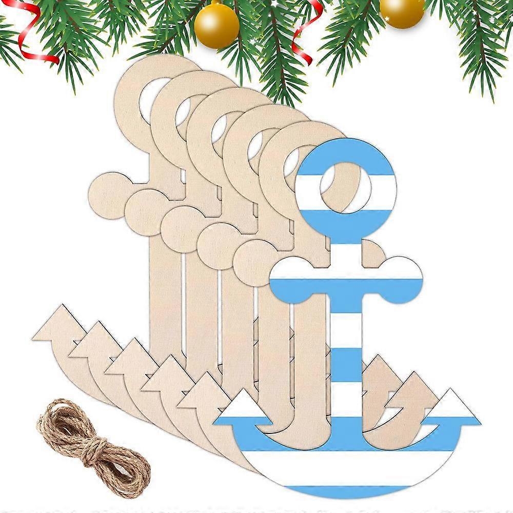 AIXING Wooden Anchor Cutout, Unfinished Nautical Beach House Decor, Ocean Shape Door Hanger with Rope, compatible with scrapbooking embellishment
