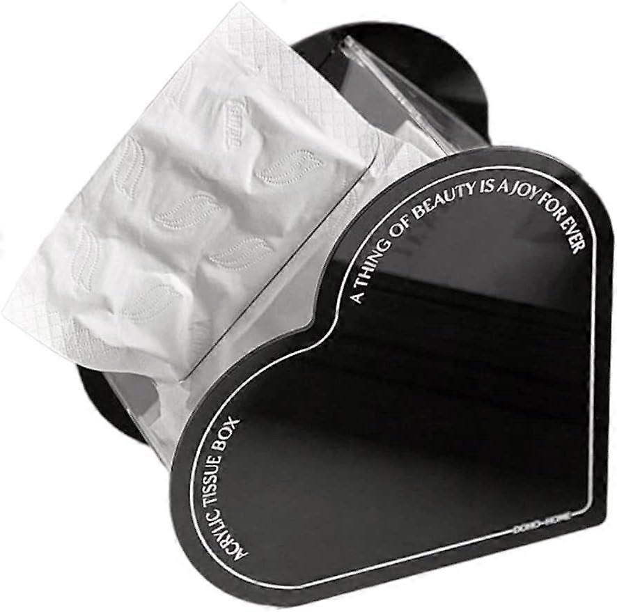 Tissue Box Cover, Modern Facial Paper Holder, Heart Shaped Acrylic, Pure Color High End, Tissue Dispenser for Home Office Desk Bathroom(Black)