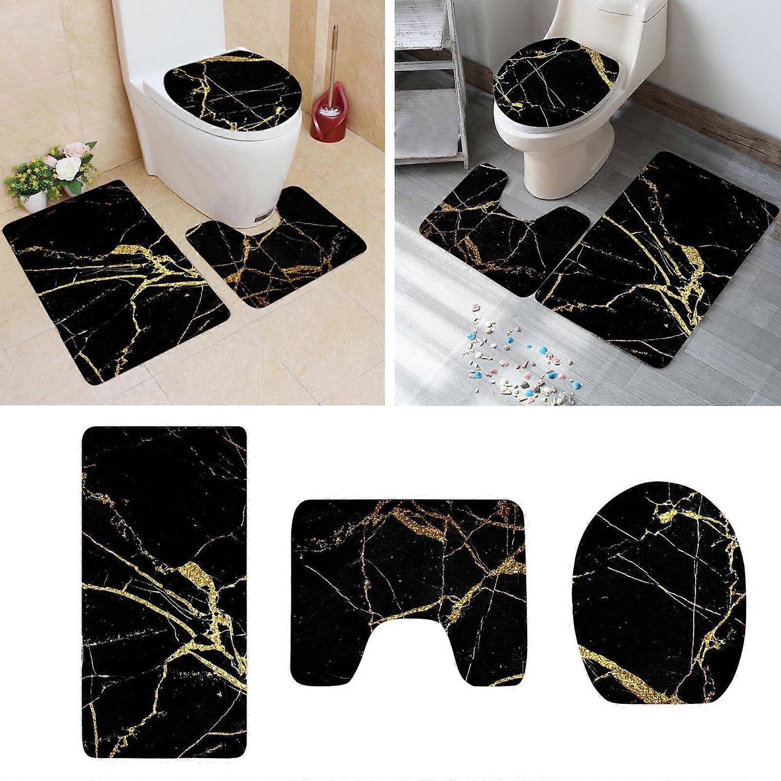 Black and Gold 3 Pieces Bathroom Rugs Set Bath Rug Mat and Toilet Lid Cover