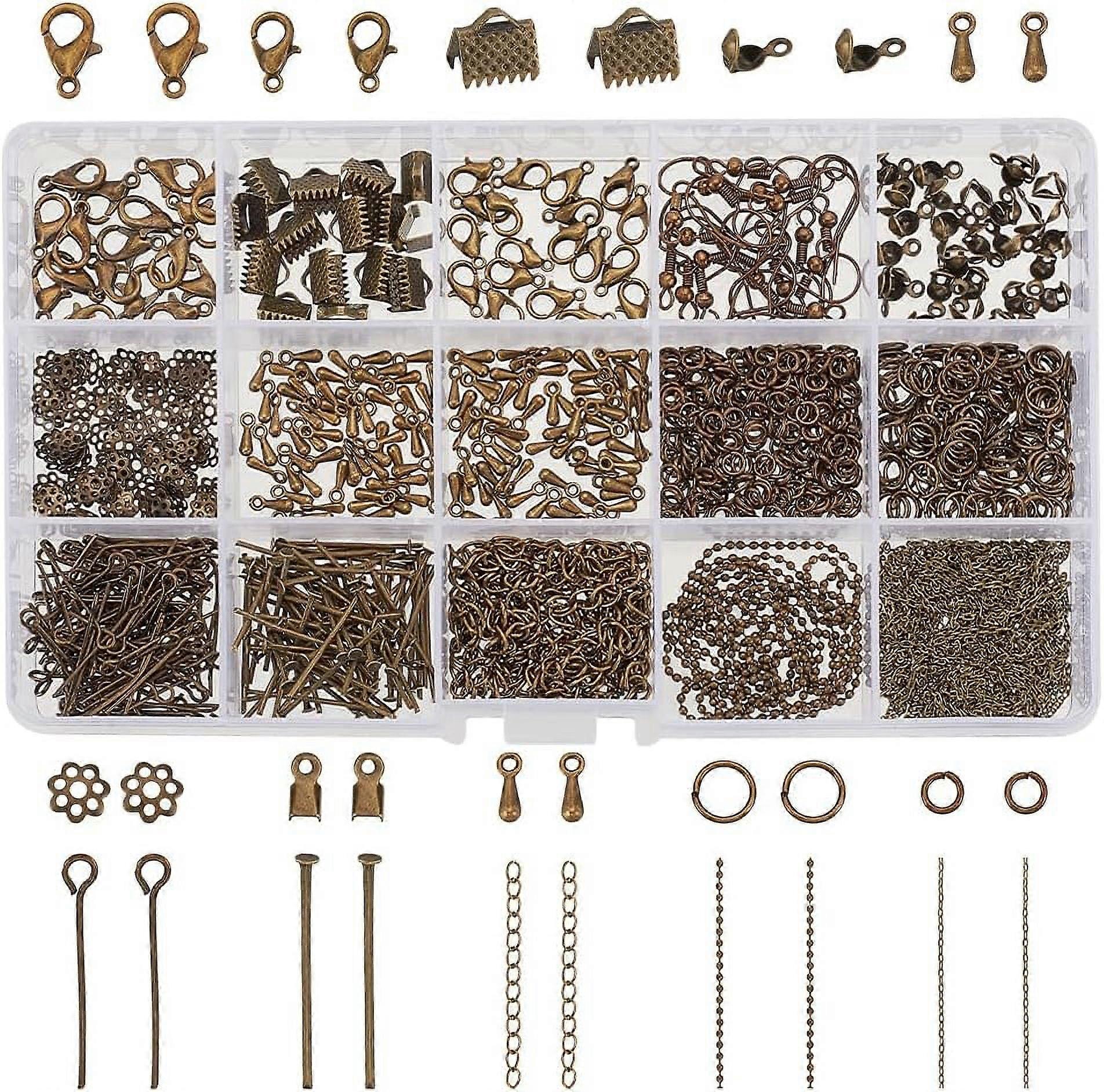 870 Pcs Jewelry Finding Kits with Lobster Claw Clasps, Jump Rings, Earring Hooks, Bead Caps & more - Compatible with DIY Projects