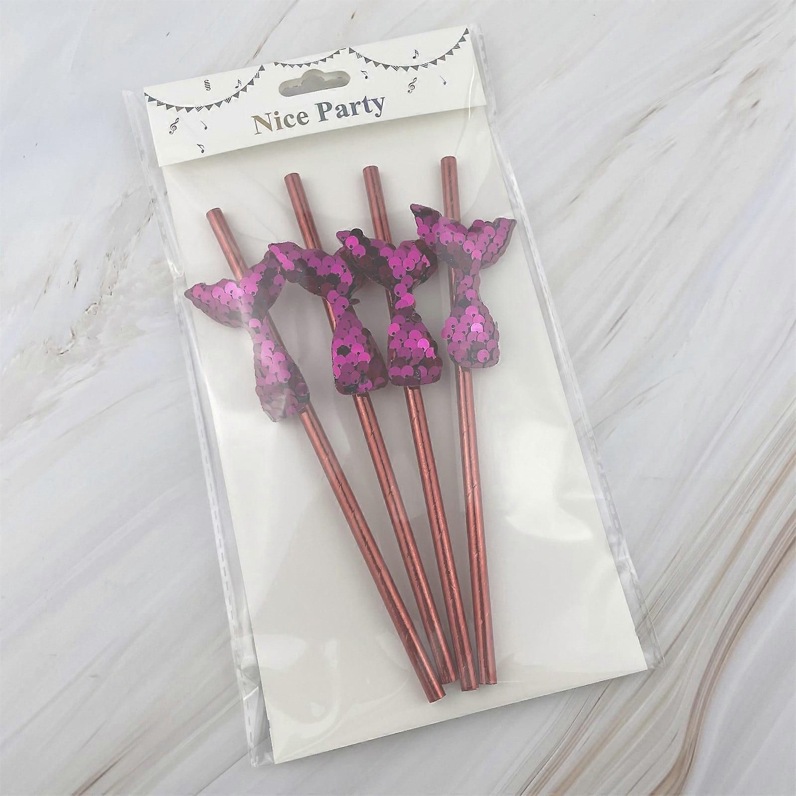 Qdahuk Disposable Straw, Party Sequins, Fish Scales, Color Three-dimensional Fish Tail, Decorative Paper Straw Red