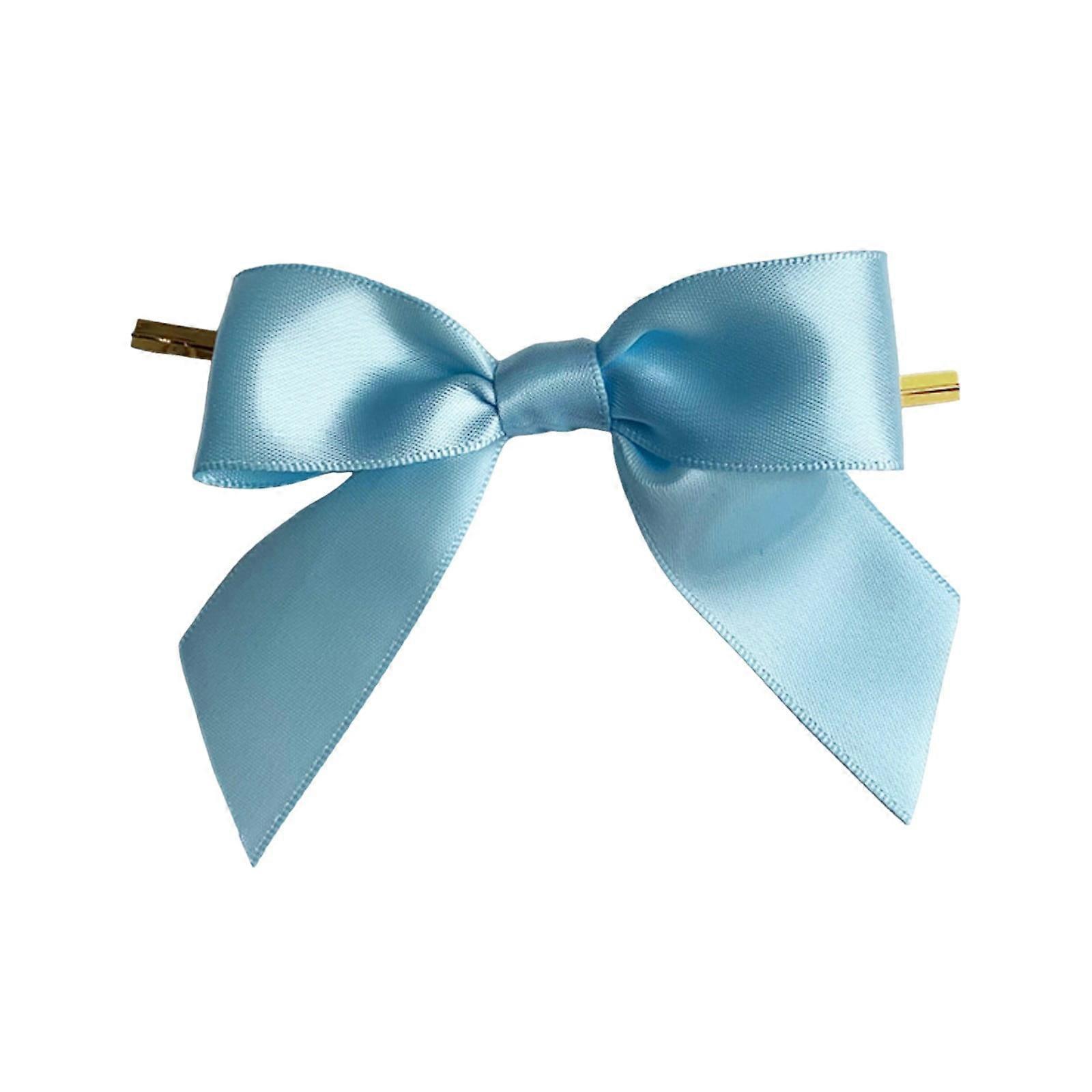 Bentne Twist Tie Bows, Satin Ribbon Bows 3.4" 50-Pack for Gift Wrapping, Party Decorations (Sky Blue) - compatible with treat bags, wedding, birthday
