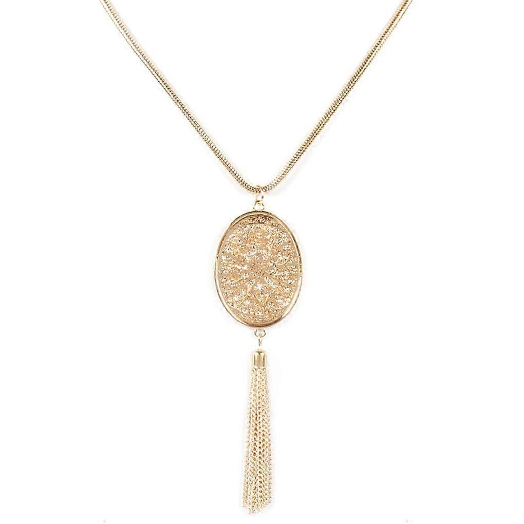 Tssuoun Women Necklace Women Pendant Creative Tassels Pendants Fashion Accessory Clothing Adornment Tassel Necklaces for Daily Decor Golden, Oval