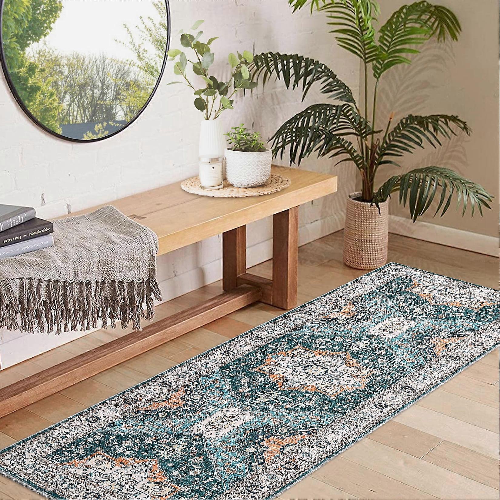 Haperlare Washable Runner Rug, 2' x 6' Green - Vintage Floral Oriental Area Rug for Living Room, Non-Slip Soft Carpet for Bedroom