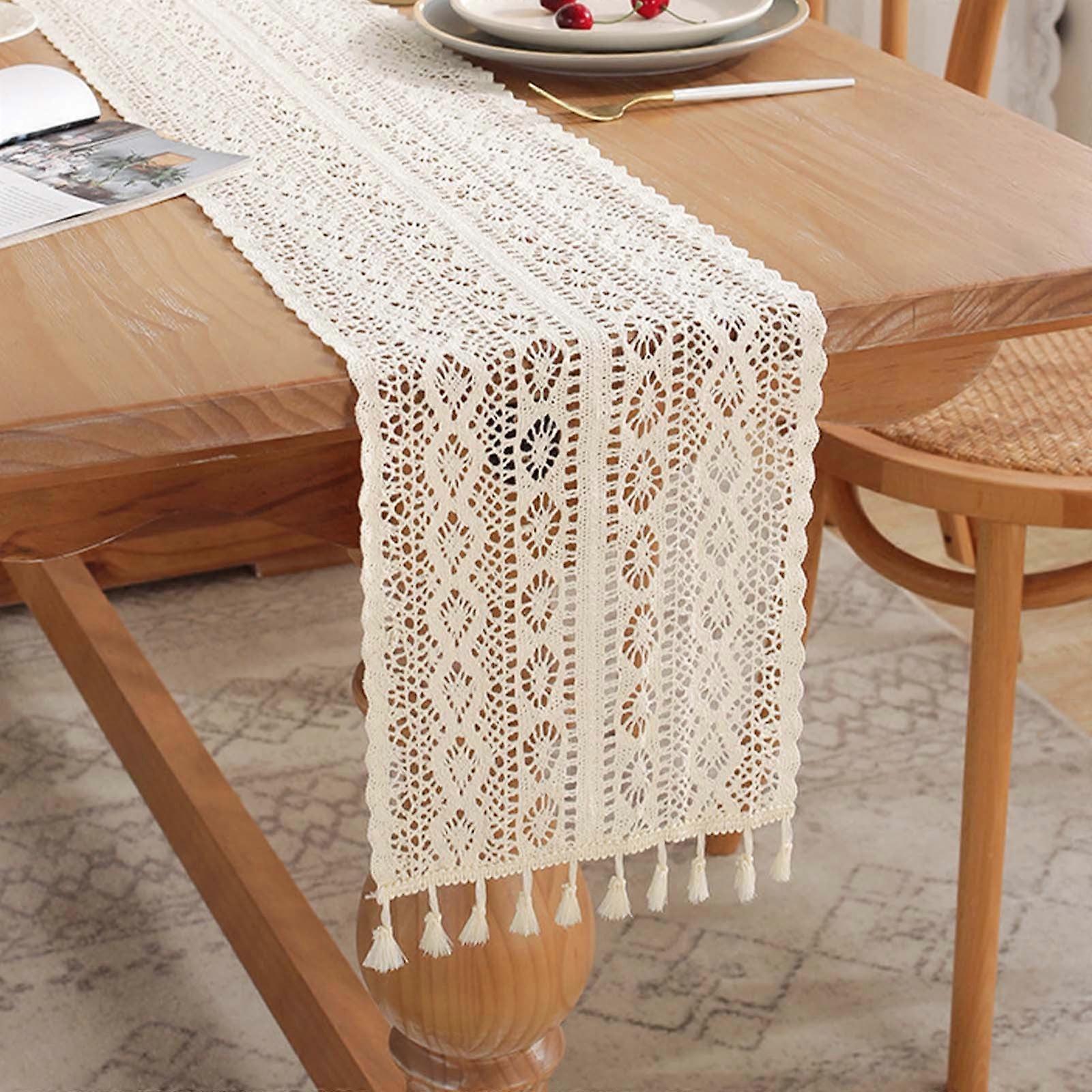 JunYeShi Boho Table Runner Rustic Linen Macrame Table Runner with Tassels Woven Table Runner for Bohemian Home Dining Bedroom Table Decoration