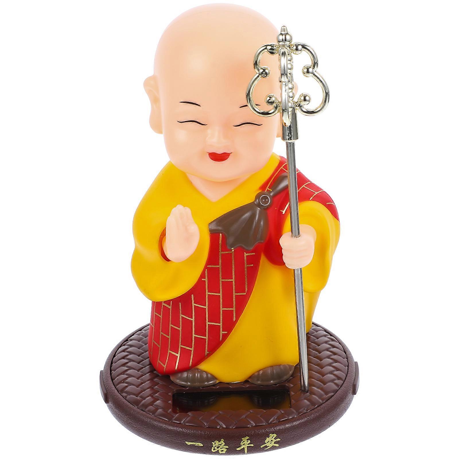 Solar Monk Ornament Shaking Head Monk Figurine for Office Decoration