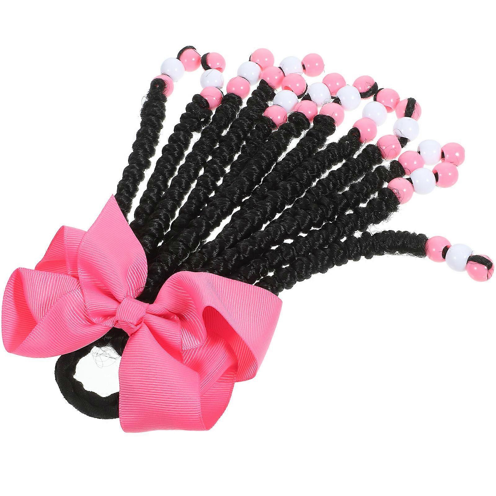 Pink Bowknot Braided Ponytail Hair Extension for Women 2Pcs Synthetic Fiber