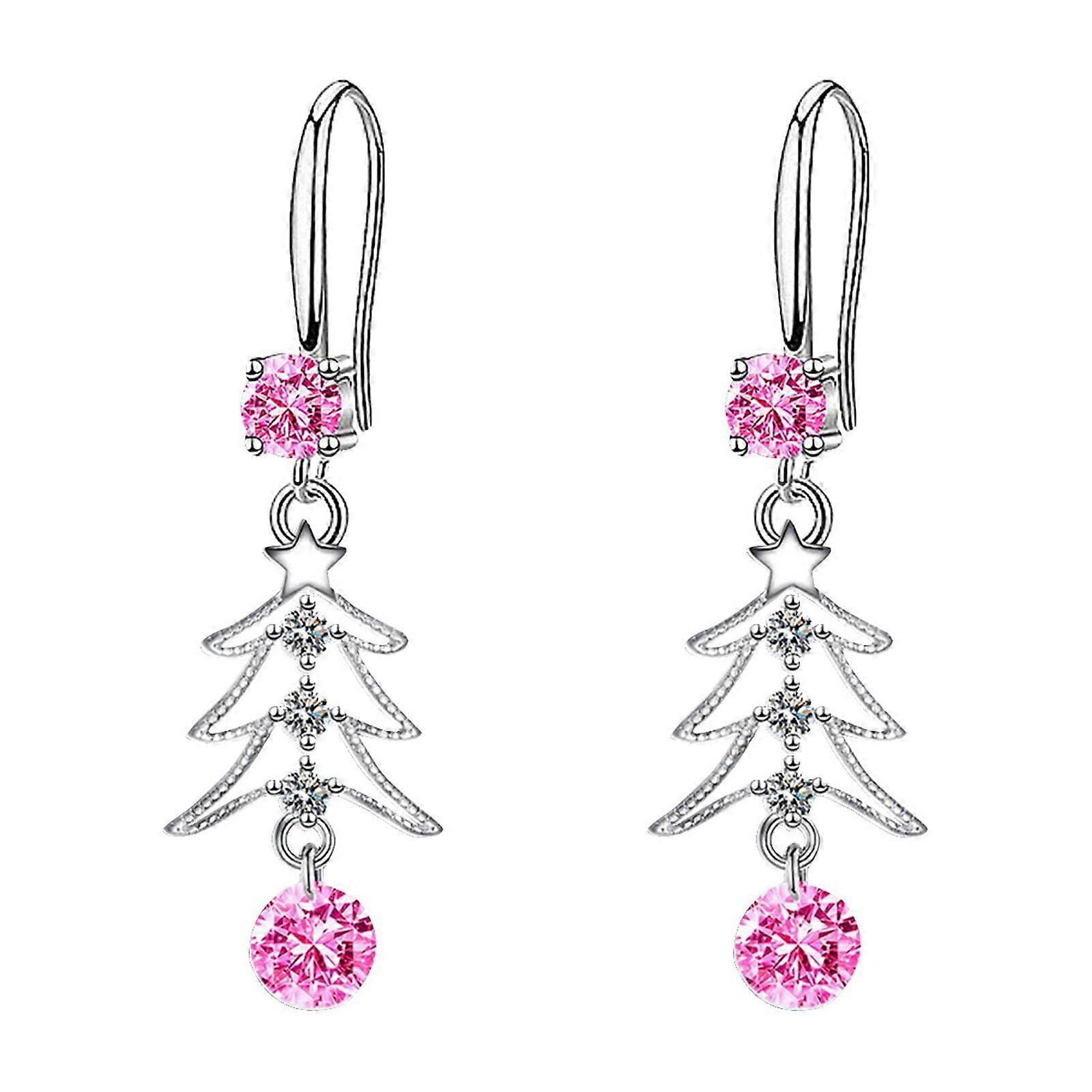 GARENAS Flat Back Earrings Christmas Tree Earrings Christmas Holiday Party Earrings Jewelry Hoop Earrings Women(Pink)