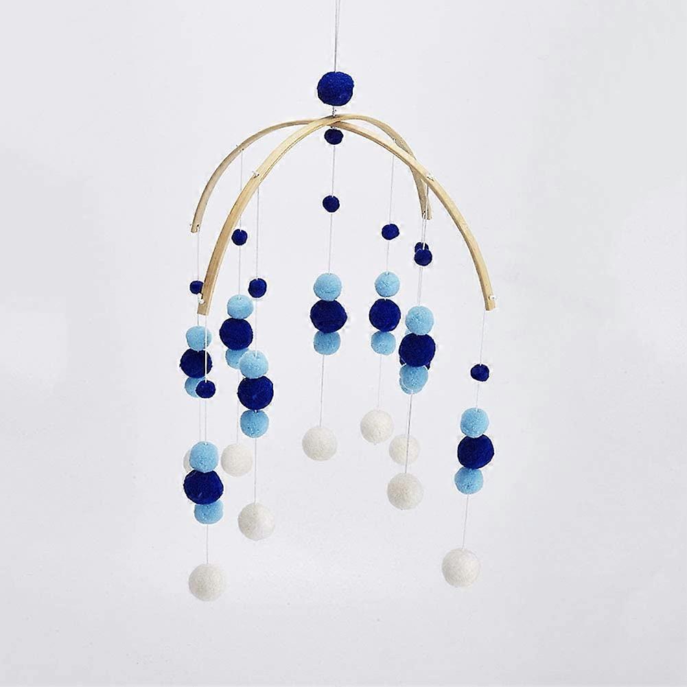 Baby Crib Mobile - Dark Blue Felt Ball Wind Chimes, Wooden Hanging Cot Mobile for Nursery Room, Baby Shower & Photography Props