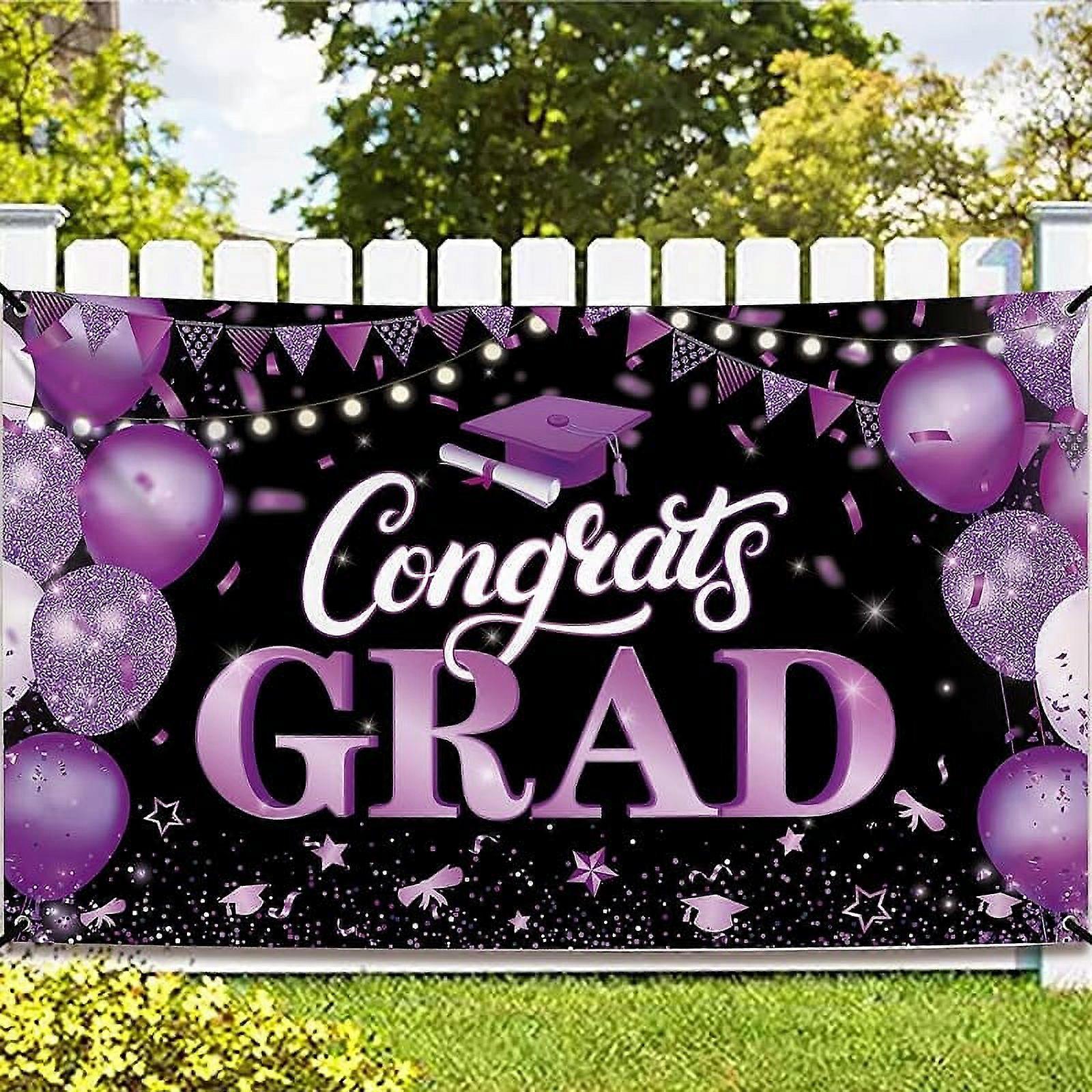 Congrats Grad Banner 72x44 Inch, Congratulations Class of 2024 Graduation Banner, Green Black Party Decor
