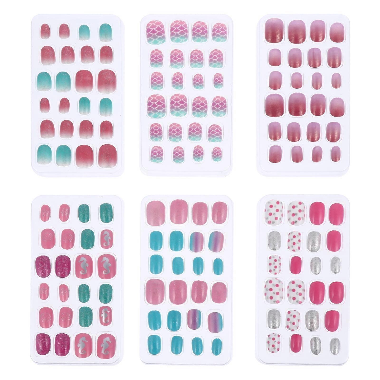 Hims 6 Boxes/144pcs Kids Fake Nails Adorable Full Cover False Nails Girls Nail Arts