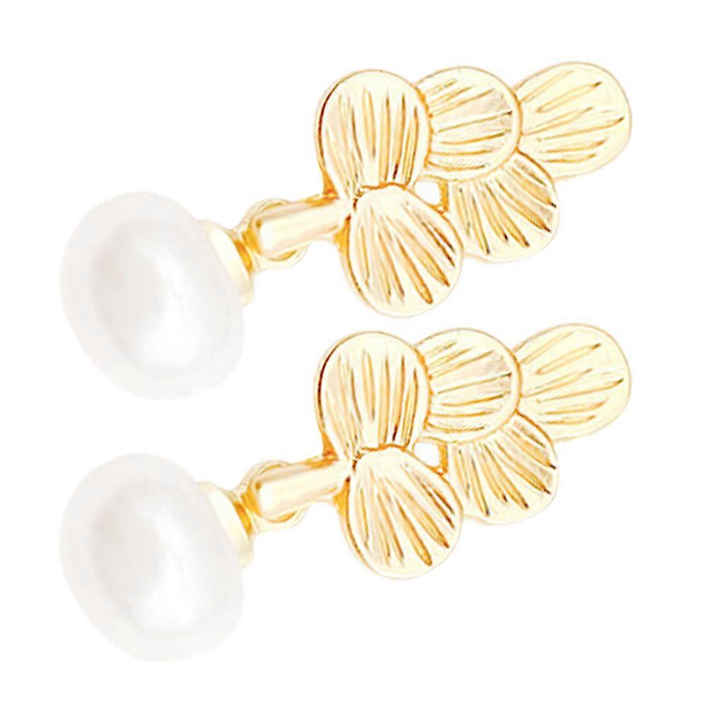 Artificial Pearl Earrings Studs for Women Fashion Earrings 2Pairs Golden Metal