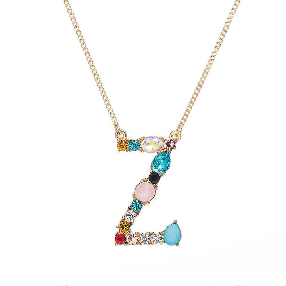 LEAQU Women Necklace A-Z Capital Letter Pendant Colorful Rhinestone Inlaid Necklace Jewelry
