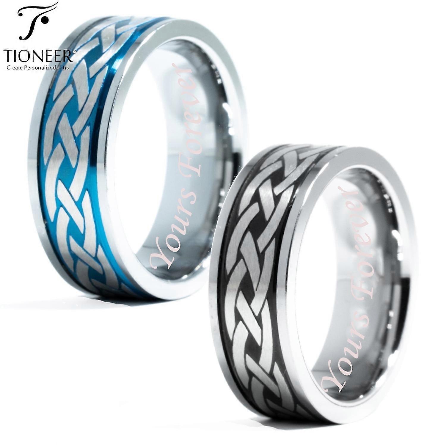 Tioneer Tungsten Carbide Wedding Band Ring Unique Celtic Knot Design Mens Womens 8MM CZ Yours Forever Engraved