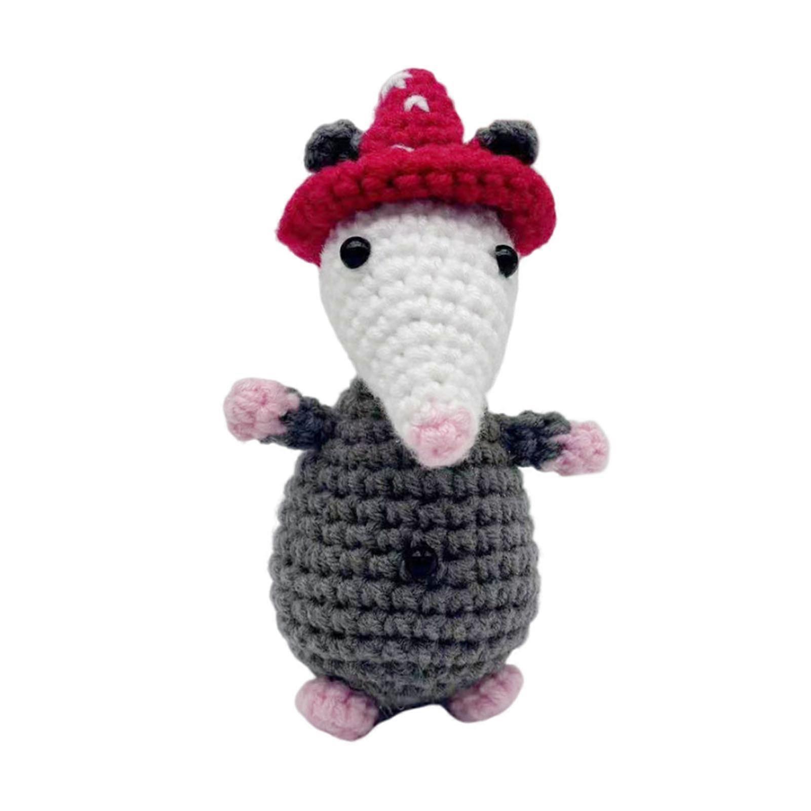 Joyfeel Crochet Possum Decoration Handmade Knitting Red Hat Mouse Home Office Desktop Car Ornament Plush Animal Doll Toy Festival Present