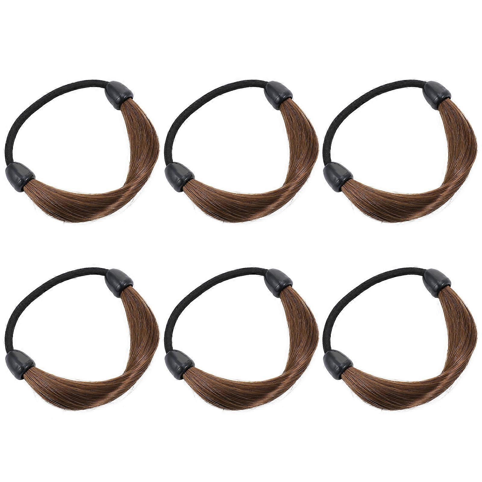 Wig Hair Ties 6Pcs Coffee Plastic Stylish Ponytail Finish Thick Hair Ties for Women