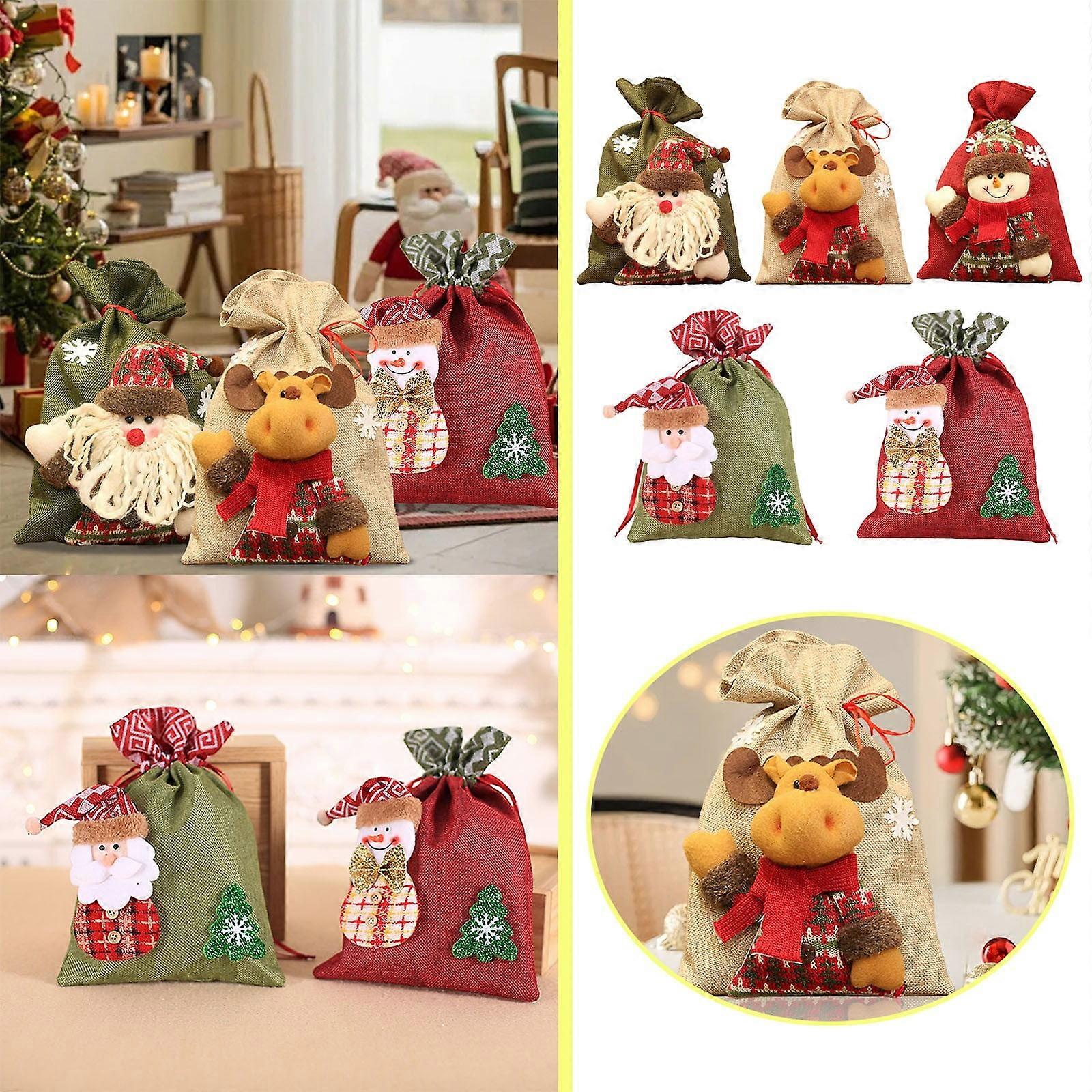 Christmas Decorations 5 Piece Set Set Drawstring Bag Santa Snowman Linen Bag