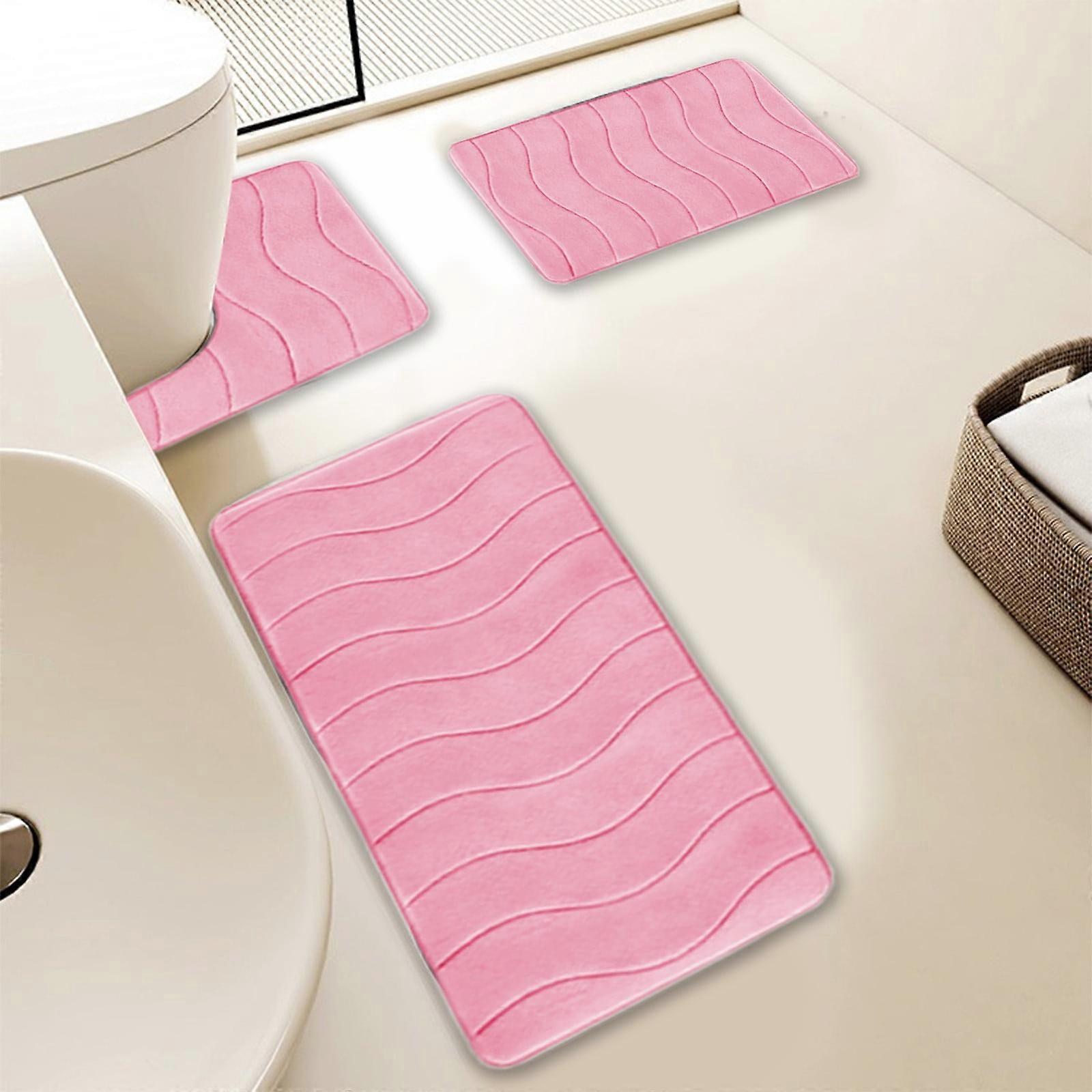 WRKEKC Bathroom Rugs Set of 3 Memory Foam Bath Mat, Non Slip Water Absorbent Rugs for Bathroom Bedroom, Pink, Large 47.2"x19.6", Small 31.5"x19.6",