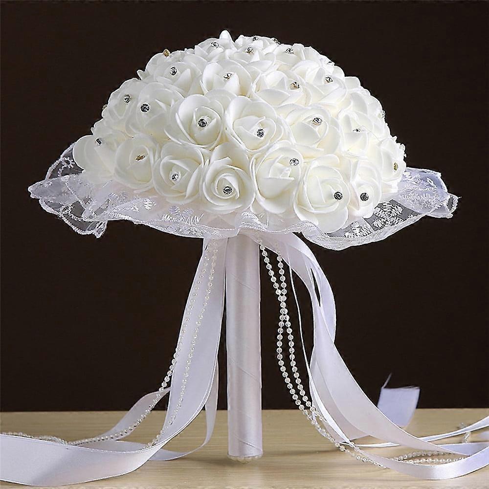 WRXMIJNHGSA Crystal Lace Roses Bridesmaid Wedding Bouquet Bridal Artificial Silk Flowers