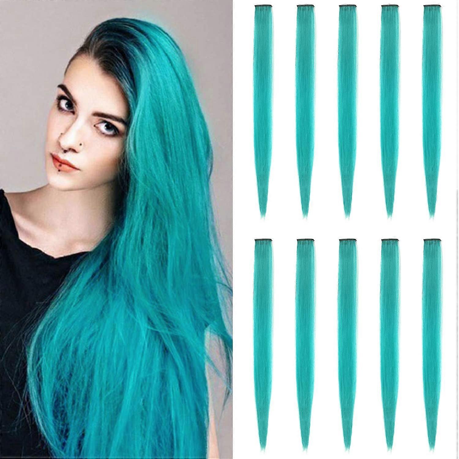 22 inch Colored Hair Extensions Straight Hairpiece, Multi-colors Party Highlights Clip in Synthetic Hair Extensions for Kids Girls (10 PCS Teal Blue)