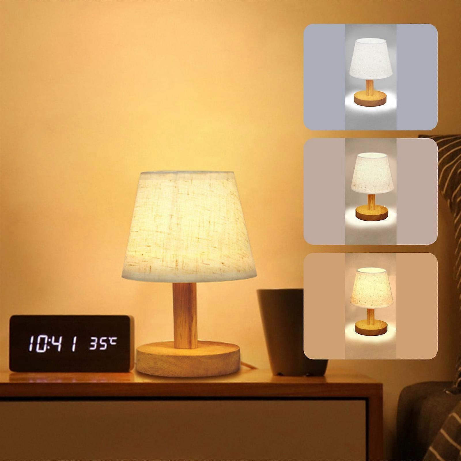 100Fens Table Lamp For Bedroom 3 Way Dimmable Nightstand Lamp With Round Flaxen Fabric Shade For Living Room Office Dorm,Solid Wood,Led Bulb Included