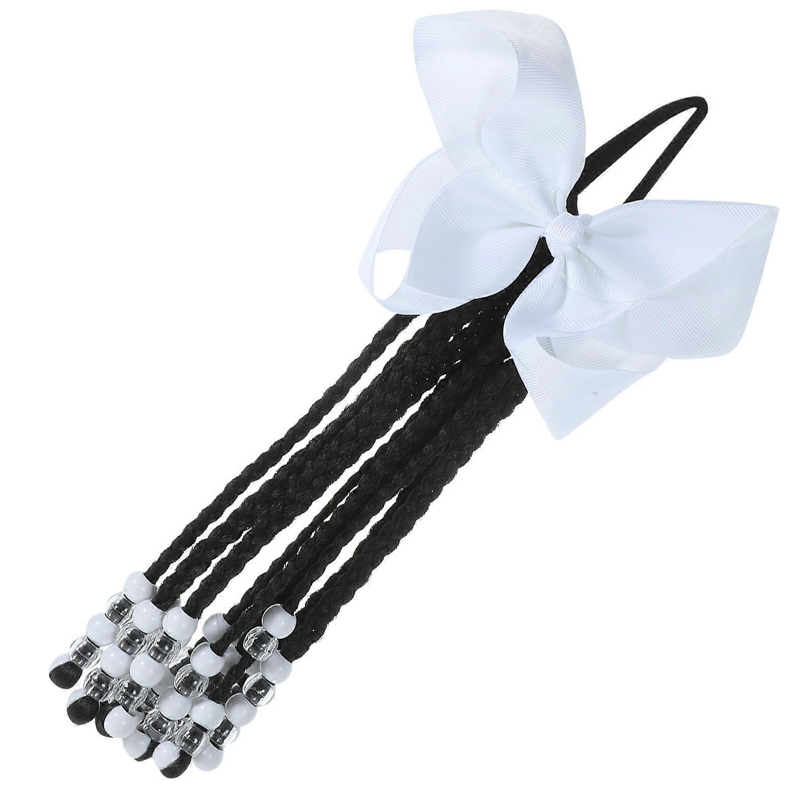 Ponytail Hair Extension Set Of 5Pcs With Beaded Bowknot For Women's Parties Daily Wear And Special Events White Color