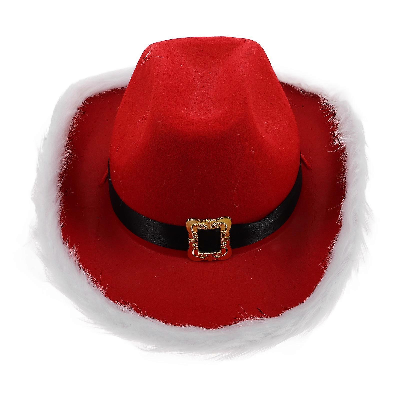 Christmas Costume Santa Cowgirl Hat for Party Use 2Pcs Red White Brim