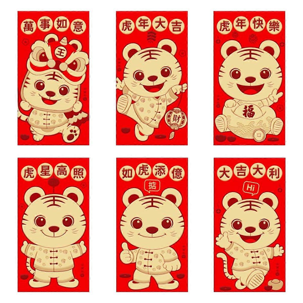 Miuline 6PCS Red Envelopes,2022 Color Tiger Red Packet Chinese Spring Festival Red Envelope Lucky Money Gift Hongbao For New Year Birthday Wedding