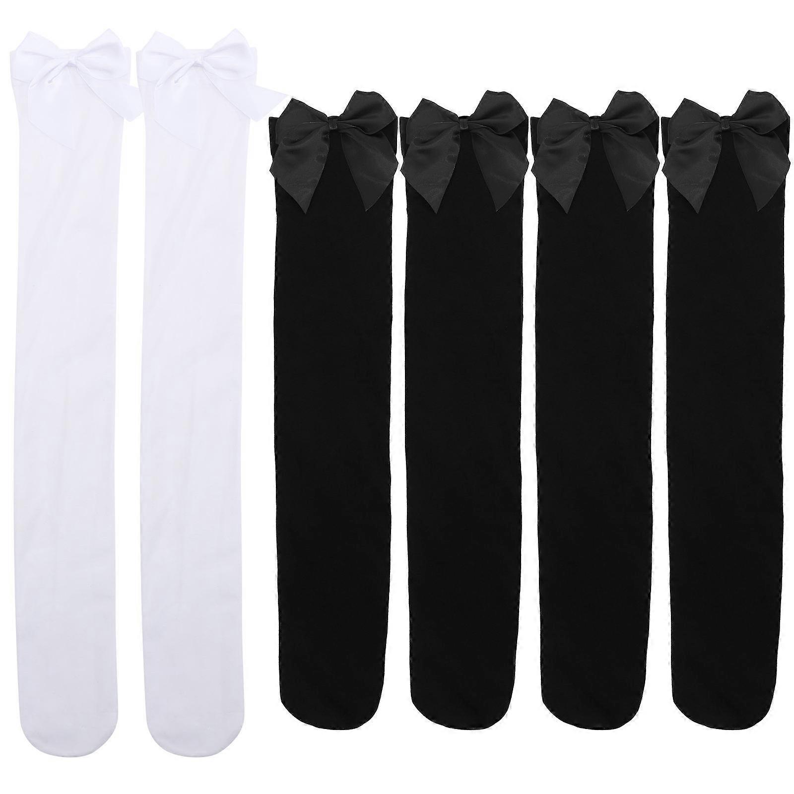 6 Pairs Bow Stockings Knee High Socks for Women Girls Costume Accessories Daily Wear Fashion