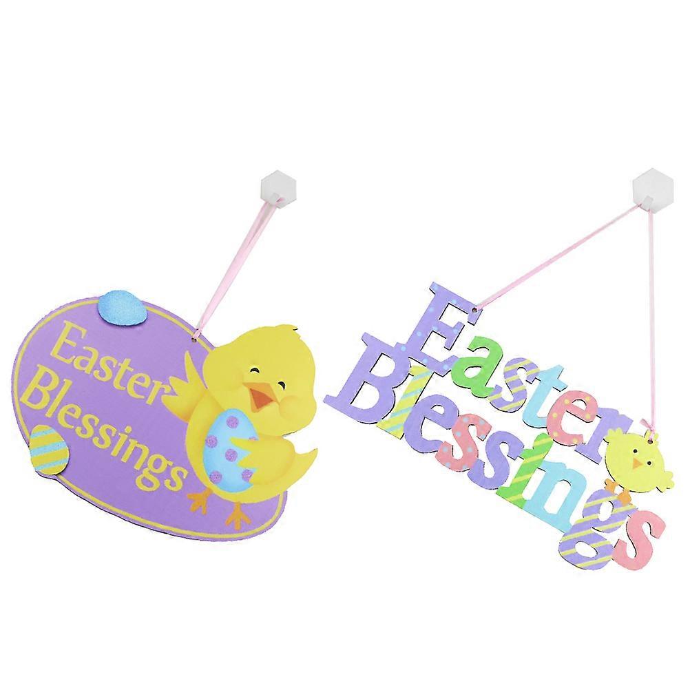 Easter Door Decor Wooden Pendant for Hanging Use 4Pcs Wooden Easter Adornments