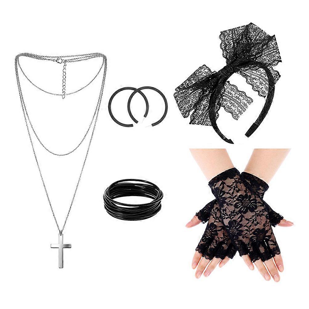 Black Women Lace Gloves for Dancing Party 4Sets Elegant Accessories