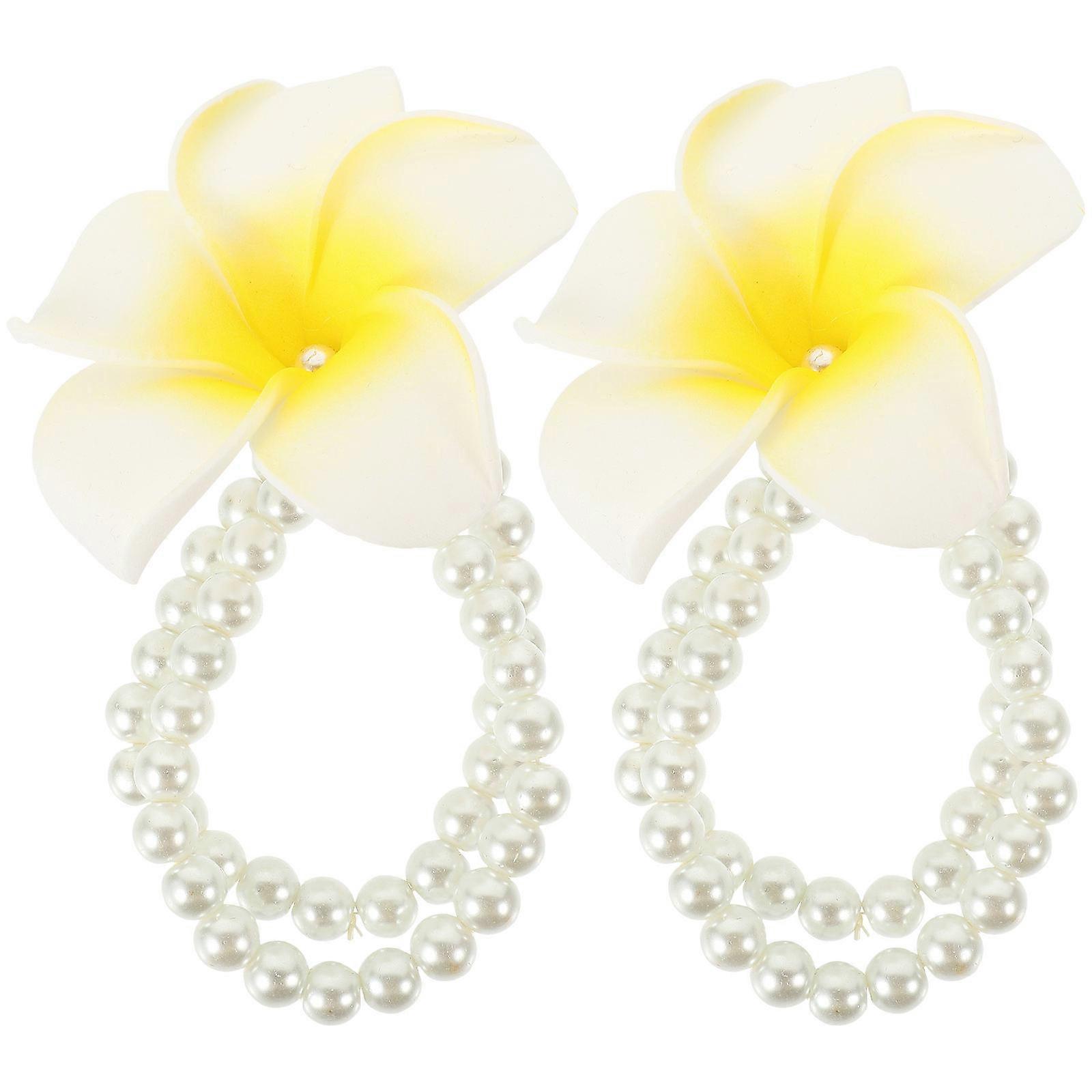 Artificial Pearl Bracelet 8 Pcs Plumeria Flower Chain Wrap Around Decoration For Girls At Parties Multi Color