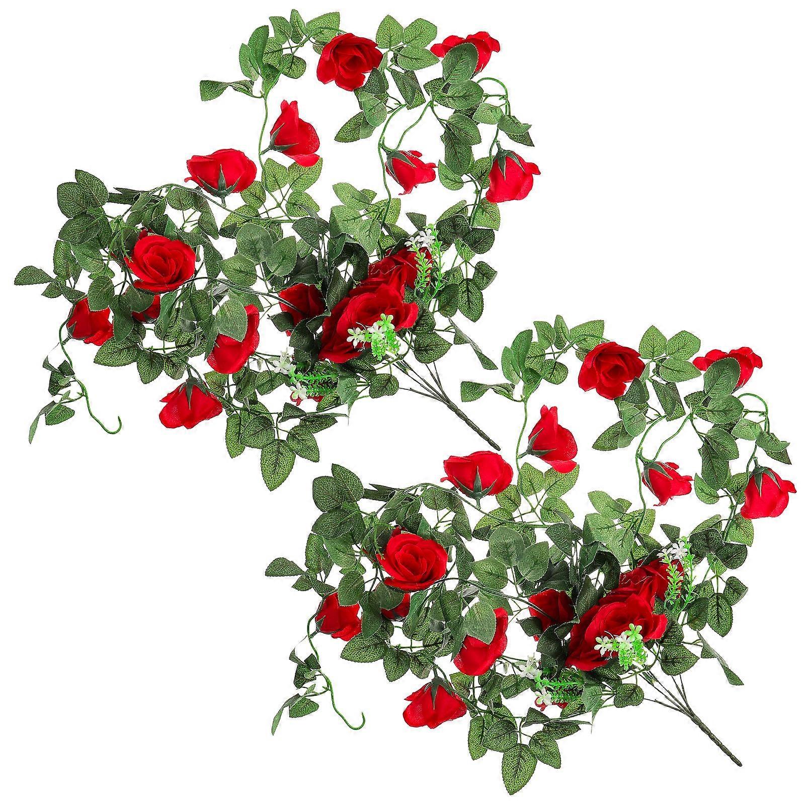 Fake Rose Vine Drooping Decor for Decoration Use 2Pcs Red Artificial Hanging Vines