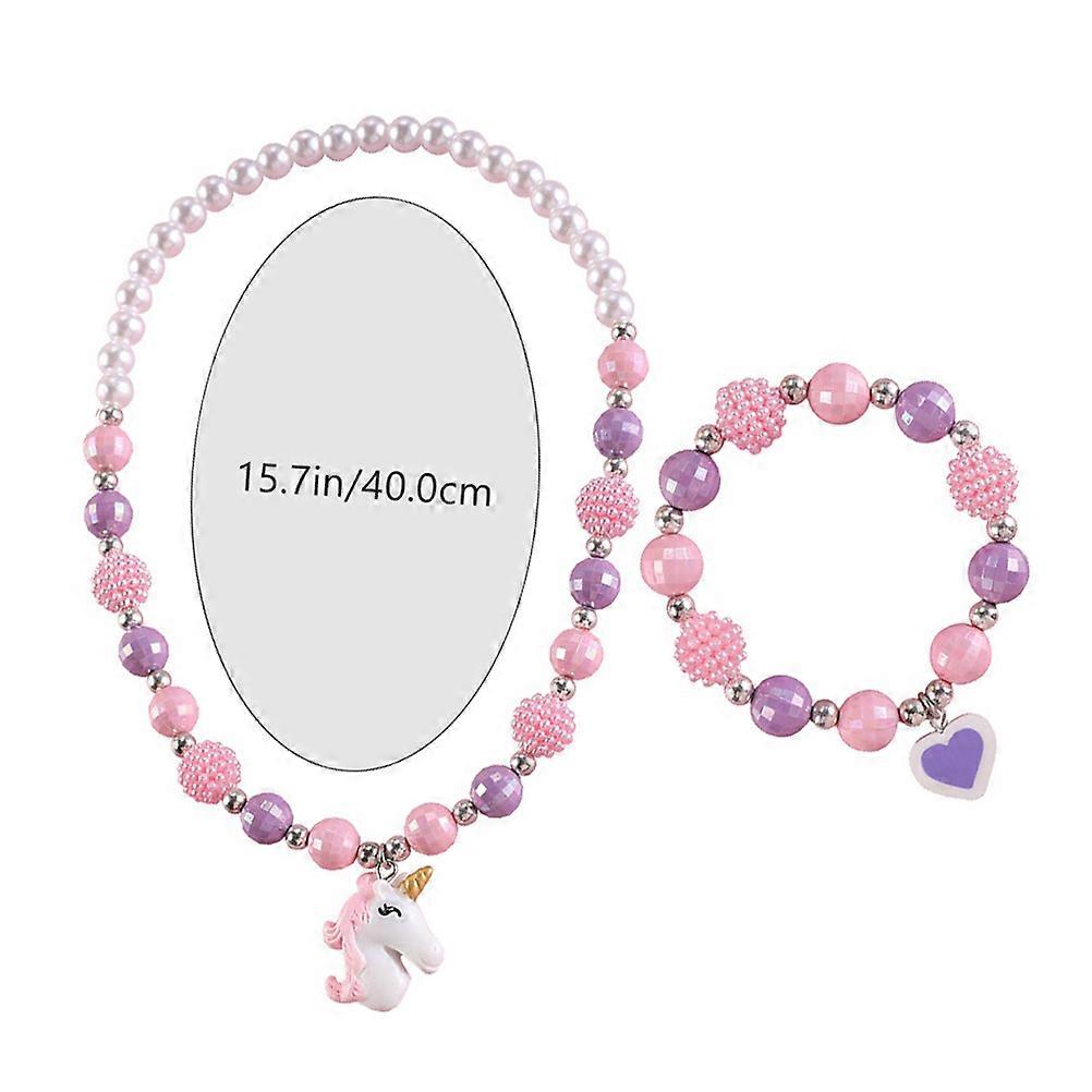 Children's Unicorn Pendant Bracelet Necklace Set for Wrist and Neck 2Pcs