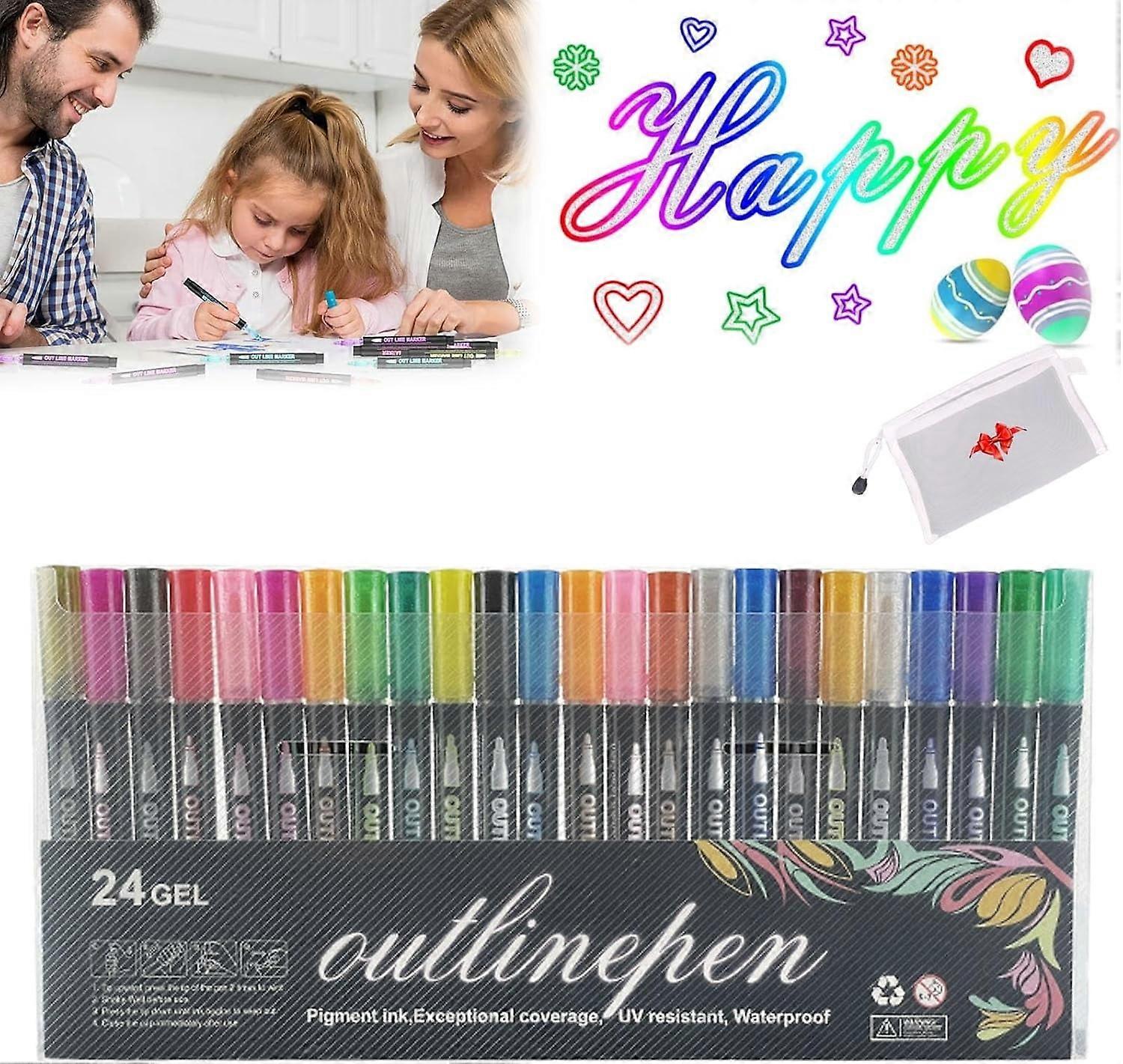 24 Colors Double Line Outliner Markers, Compatible with Acrylic Surfaces, Dual Brush Pens for Graffiti, Doodling, Crafts & Greeting Cards
