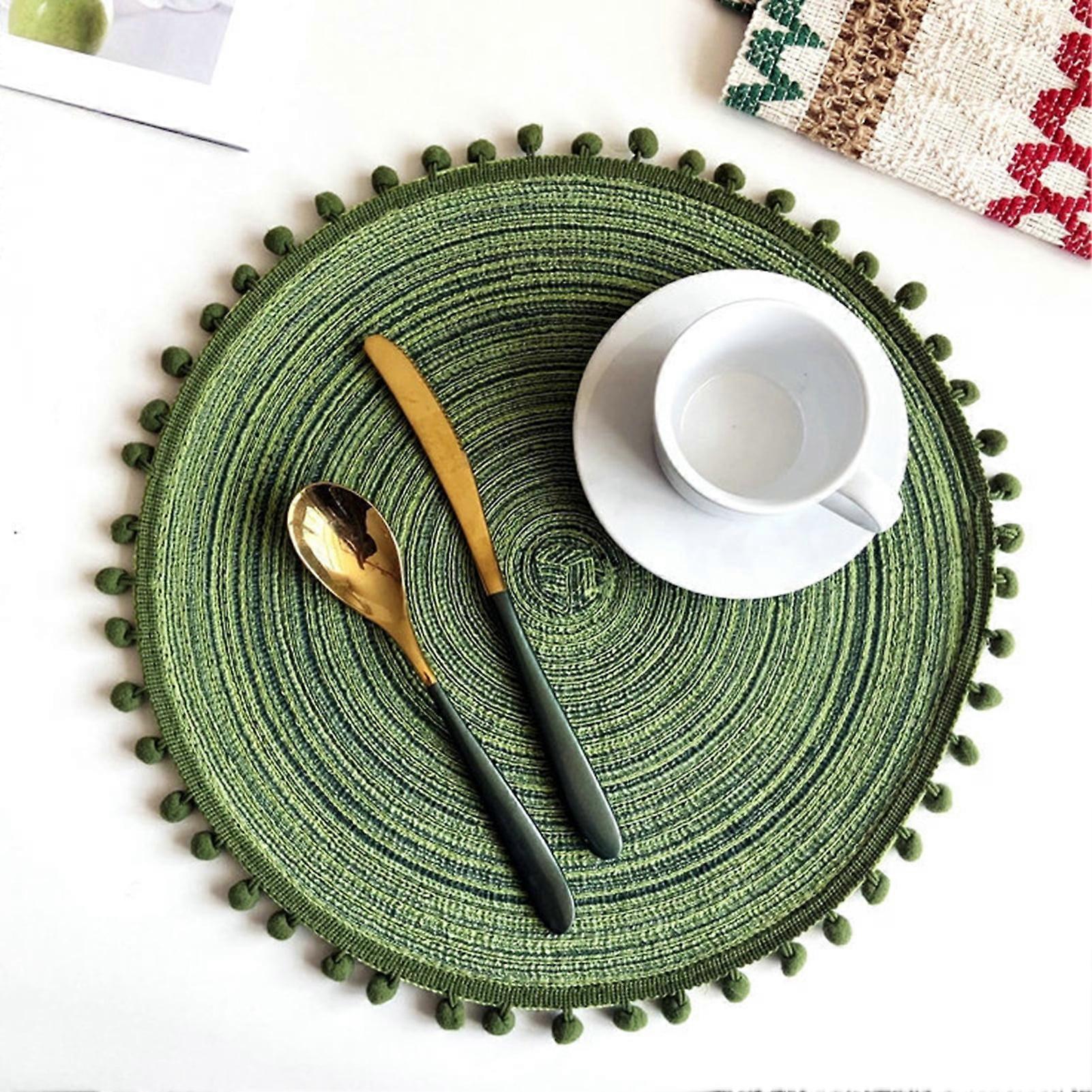 Farfi Hot Pad Non-slip Heat Resistant Cotton Yarn Round Woven Table Placemat Home Decor (Green,35cm)