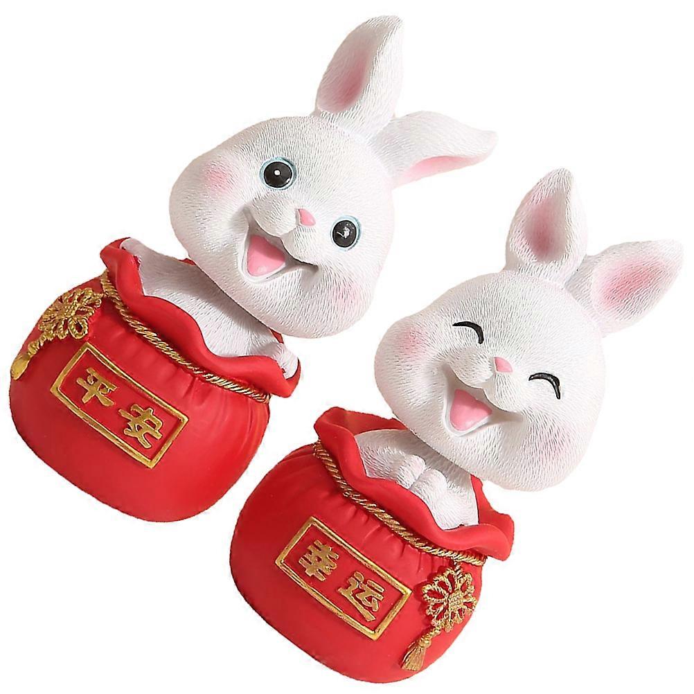 Rabbit Shape Desktop Decoration for Women Collectors Garden Micro-Landscape Red Resin 2Pcs