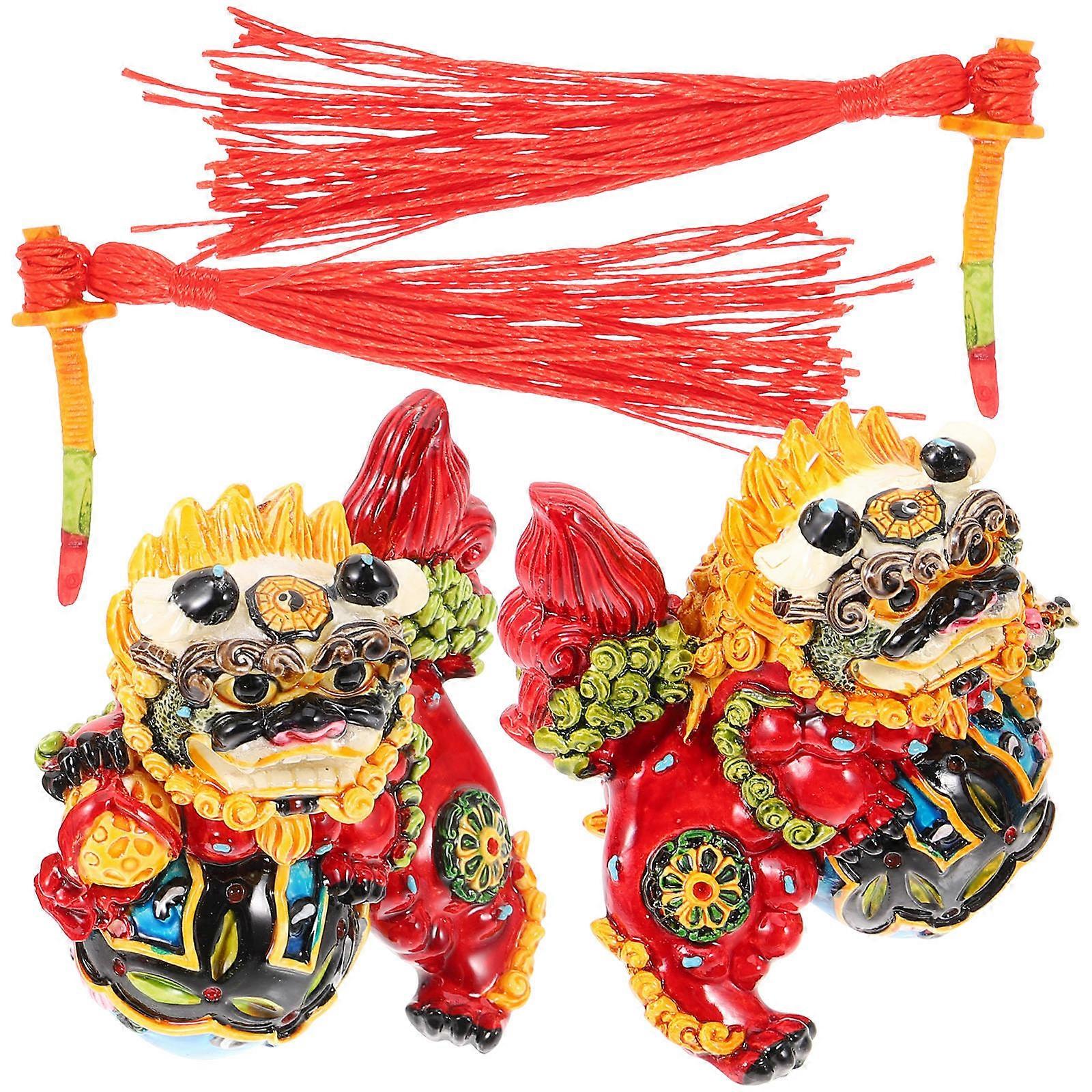 Resin Lions Figurines 1Pair Assorted Color Resin Desktop Mascot Statues for Home