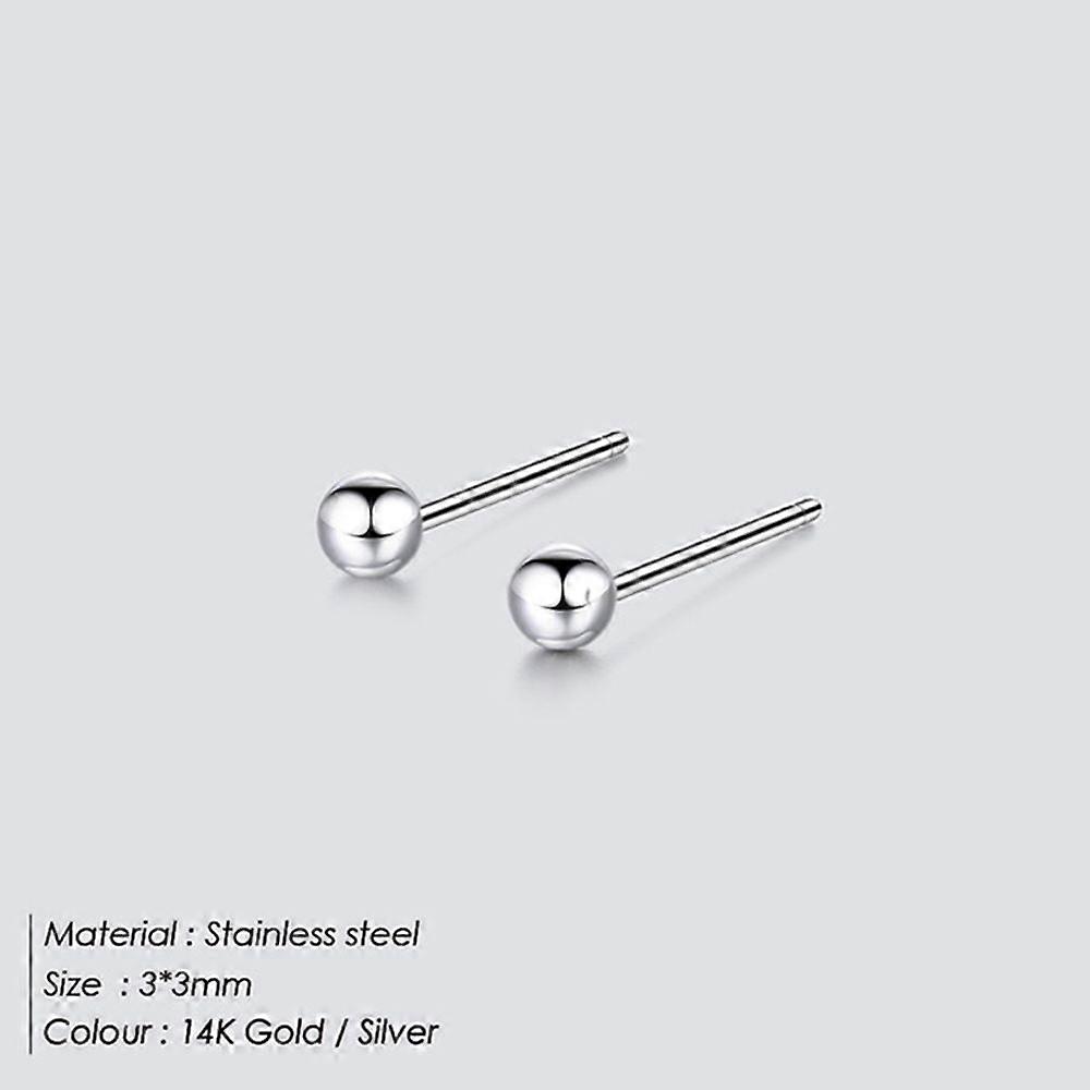 Fashion Luxury Stainless Steel Classic Women Silver Color Ear Stud Stud Earrings Small Ball Earrings SILVER 3MM