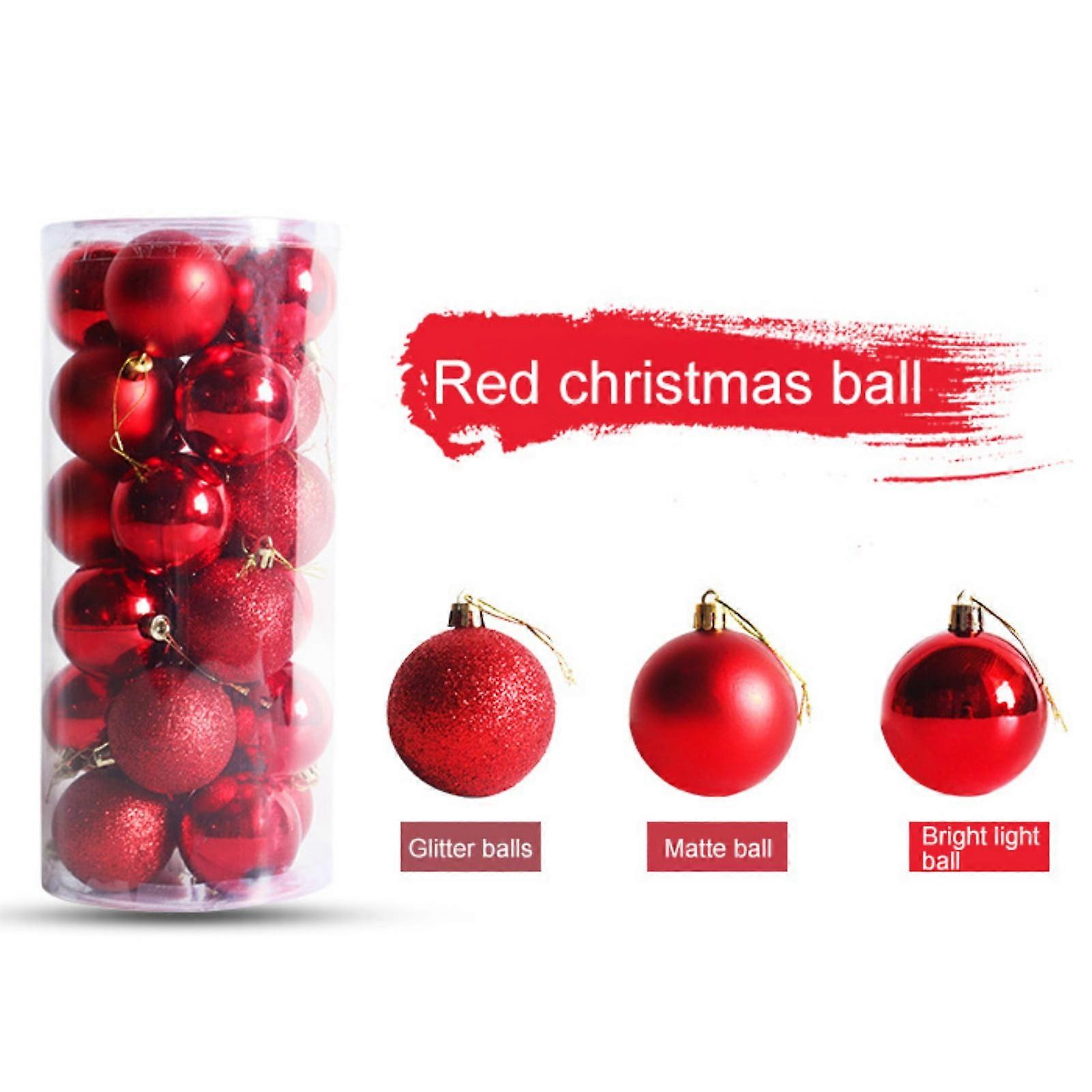 24Pcs Christmas Balls Assorted Pack, Thickened Shatterproof Sphere Electroplated Xmas Tree Hanging Ball Pendants Xmas Balls red 4cm