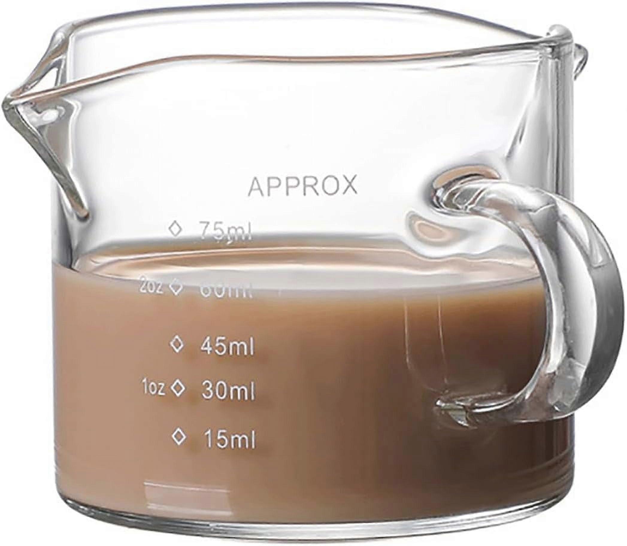 POWKOL Double Spouts Measuring Coffee Milk Cup 75ML Espresso Shot Glass Espresso Accessories with Handle for Barista Coffee Espresso Making (1 Pack)